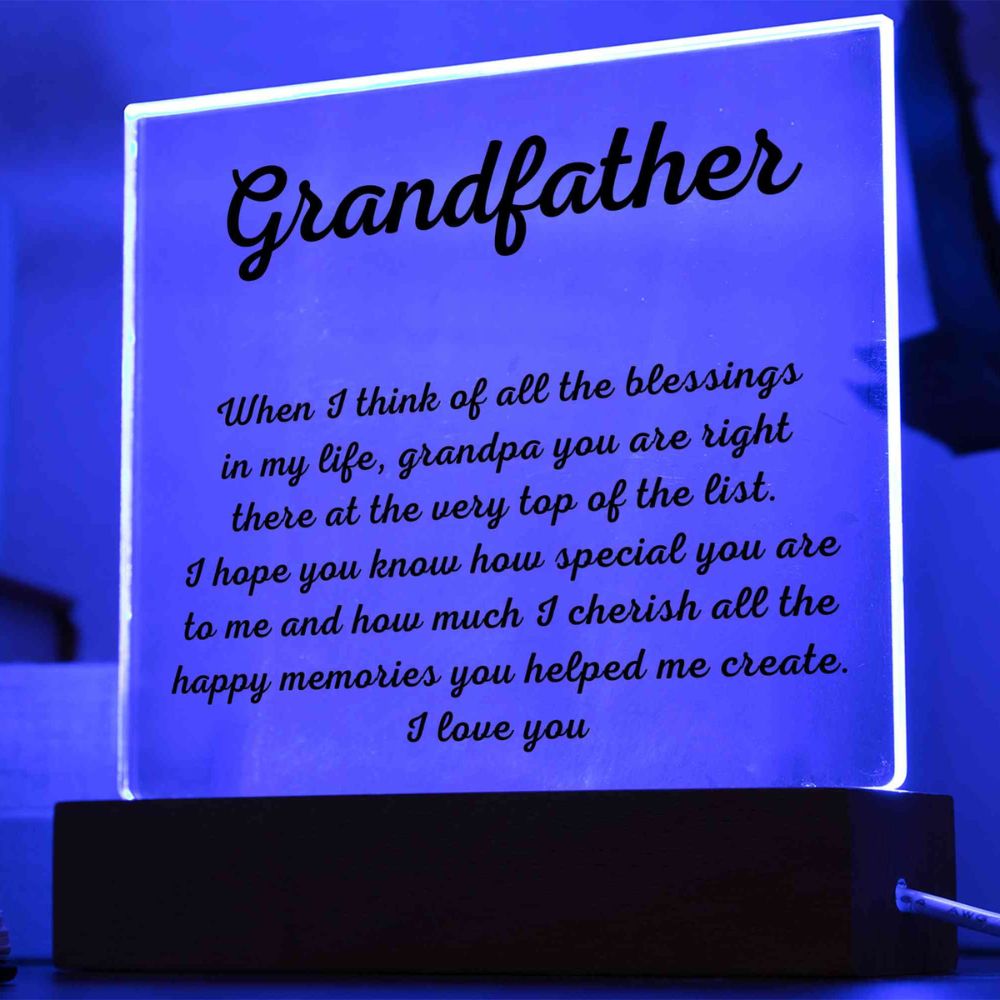 Grandfather Gift with thoughtful message, Acrylic Plaque with LED